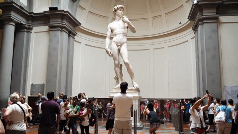 Италийн суут зураач, уран барималч Микеланжелогийн 1501-1504 оны хооронд бүтээсэн энэхүү баримлыг урлагийн хосгүй бүтээл гэдэгтэй хэн ч маргахгүй биз ээ. Библийн гол баатруудын нэг, хожмын их хаан Давидын эл нүцгэн баримал 5.17 метр өндөр бөгөөд Флоренц хотыг зорин очих хэн бүхний хамгийн түрүүнд ойроос харахыг хүсдэг бүтээл юм. Эр хүний гоо сайхныг бүхий л талаар цогцлоосон, дайн байлдаанд ялсан гэхээсээ ямар ч тулаанд ороход бэлэн эрэлхэг баатрын дүртэй буй Давидыг Микеланжело тухайн цагт хот-улс байсан Флоренцийн иргэдийг хүчирхэг хөршүүдийнхээ өмнө ихэмсэг бардам байгаасай гэсэн сэтгэлээр бүтээжээ. 1873 оноос Флоренцийн төв галерейд буй Давид урлан бүтээгчийнхээ чухам тэр санааг биелүүлэн Ром тийш чиглэсэн харцтай байдаг аж.